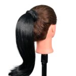 Postizo de cabello sintético, manejable al calor, fácil colocación con velcro y peineta, largo aproximado de 36 cm. Soporta temperaturas de hasta 210 grados.