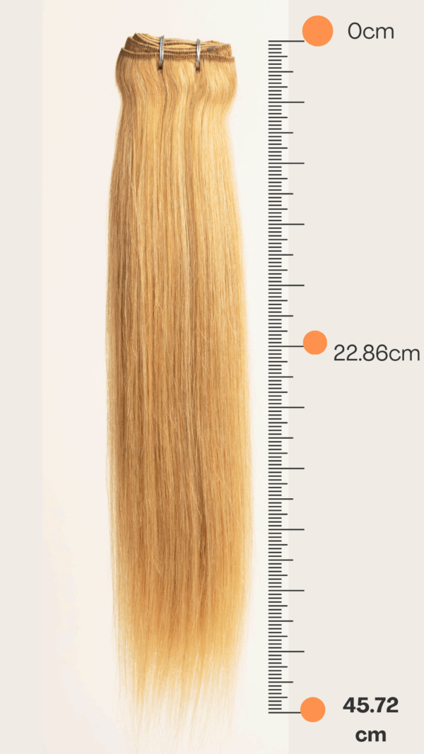 Extension de cabello 100% natural de 18″ pulgadas de largo (45-46 cm), con aproximadamente 100 -110 gramos de cabello.