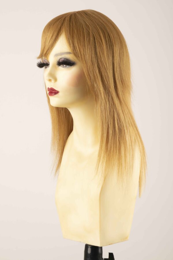 Peluca de cabello Natural lacia con 14″ pulgadas de largo (35 cm) de raiz a punta, cuenta con fleco y ajustadores en la parte interna para adaptarse a cualquier persona.