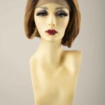 Peluca de Cabello Natural de aproximadamente 17 cm de largo de raíz a punta, estilo de cabello corto de melena al hombro sin fleco.