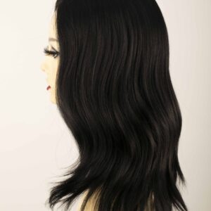 Peluca de Cabello Natural de aproximadamente 20 cm de largo de raíz a punta, estilo de cabello corto de melena al hombro sin fleco.