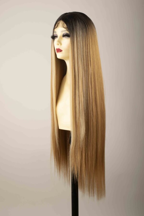 Peluca de cabello Sintético de 95 cm de de largo desde la raíz hasta la punta, apariencia natural baby hairs integrados.