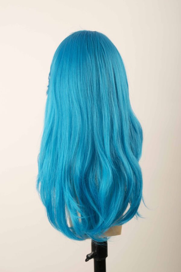 Largo aproximado de 60 cm, con fleco y simulación de cráneo (silicón), ajustadores en la parte baja de la nuca para adaptar el tamaño de la peluca a cada persona.