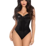 Este body ultrasexy para mujer presenta un frente deshuesado y una cremallera en la parte posterior, con un detalle de corpiño con alas de murciélago que es perfecto para disfraces sexys y looks atrevidos de juegos de rol.